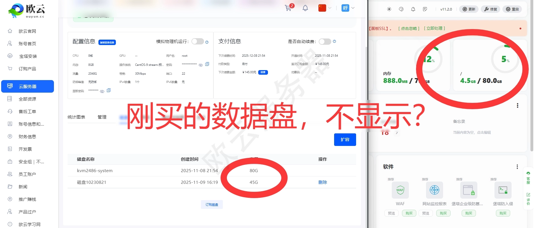 买了数据盘后,先重启下服务器,可能要点【强制重启】才能识别,然后接着看教程